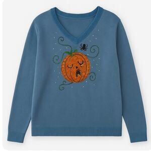 Vintage Halloween Sequin Jack O Lantern Pumpkin Coastal Grandma Sweater