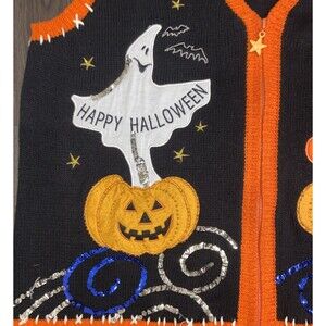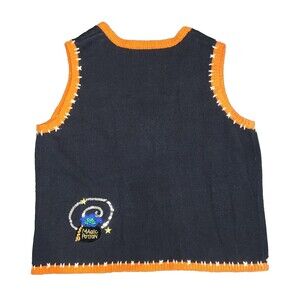Vintage Halloween Sweater Vest Holiday Editions Embroidered Women's In vintage used condition. Sweater has few flaws. where the embroidery is coming undone or has snags. Vintage Halloween Holiday Editions Halloween Knit Sweater Vest. Halloween Holiday Embroidered with sequins. Pumpkins, ghost, spider, black cat, Magic Potion, frog, stars. Black, orange, blue, white, yellow, green. Tag is missing from collar; however, it measures about a size XL. Please refence photos for measurements. Approximate measurements laying flat: pit to pit - 22.5 inches, shoulder seam to hem - 24 inches. Ugly Sweater Party, Halloween Party, Holiday Party.