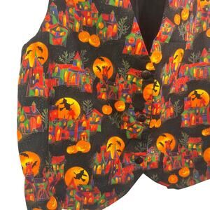 Vintage Halloween Teacher Vest, witch Novelty Print Added Extras NYC, 90s smal