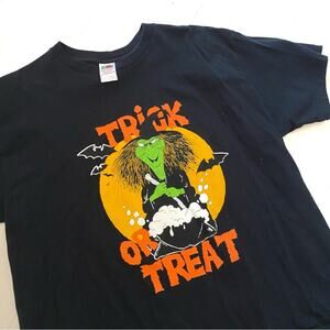 Vintage Halloween Trick Or Treat Green Witch Tee XL 1990s 90s