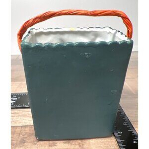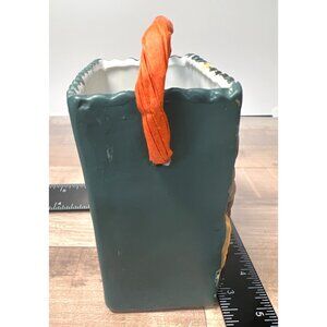 This vintage ceramic candy holder features a charming Halloween design with a witch and owls. Its sturdy construction is complemented by a vibrant orange handle, making it a reliable and visually appealing choice for festive occasions. Some Scuff Marks On Back