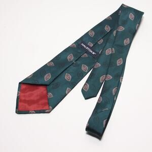 Vintage Halston III Green Paisley Print Tie 4" x 57" Poly/Silk Blend Made in USA