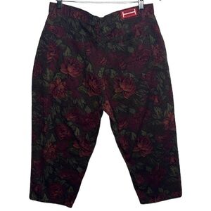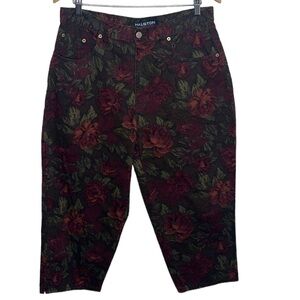 Vintage Halston Jeanswear Maroon Floral Ankle Length Jeans Women Size 14