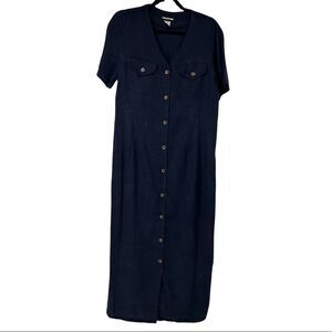 Vintage Halston Blue V Neck Full Button Front Short Sleeve Tencel Rayon Dress