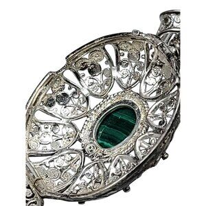 Vintage Hamilton 17J Brooch Watch 800 Silver Filigree Malachite Swiss Runs As-Is