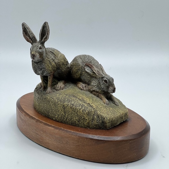 Beautiful Vintage Hamilton Collection Bronze Rabbits Sculpture.