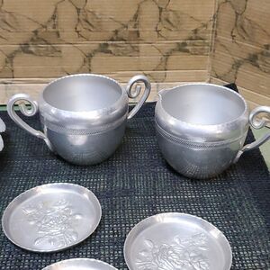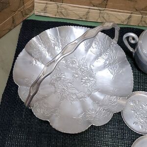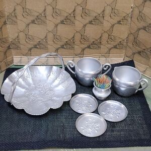 Vintage Hammered Aluminium Basket dish, coasters, cream/ sugar, toothpick holder