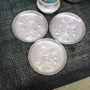 Vintage Wendell Hammered Aluminum 'Rose' Pattern Coasters Set Of 3