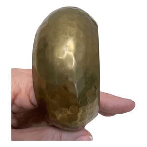 Vintage Bohemian Hammered Statement Bangle Bracelet in brassy golden tone metal with minor scuffs from normal wear, some tarnish on inside cuff. It is great for casual days at work, school, date night, night out with the girls, and Family Dinner. It would make a great Christmas Hanukkah Valentine’s Day Birthday or any Holiday gift! Made in India