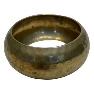 Vintage Hammered Bangle Bracelet Golden Brass Tone Metal Statement Bohemian