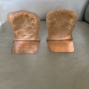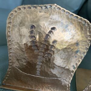 Vintage Hammered Copper Bookends Pair Rustic Tree Motif MCM Artsy Brutalist