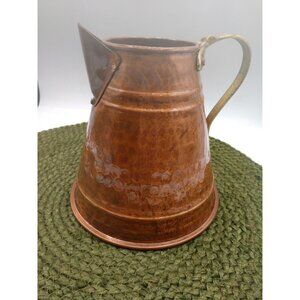 Vintage Hammered Copper Water Pitcher With Brass Handle & Spout