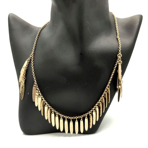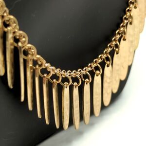 Vintage Hammered Gold-tone Metal Fringe Necklace - 20 inch chain