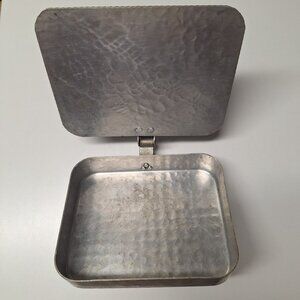 Vintage Hammered Metal Floral Embossed Hinged Lid Dust Pan Crumb Silent Butler