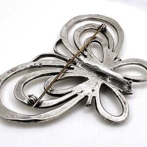 Vintage Hammered Silver Pewter Oversized Butterfly Statement Brooch (EUC)