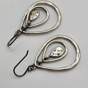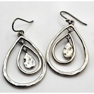 Vintage Hammered Silvertone Teardrop Earrings 1.5in
