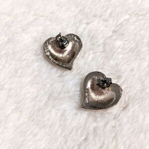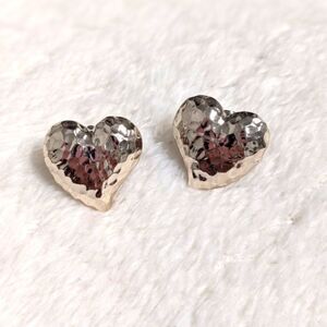 Vintage Hammered Silvertone Heart Shaped Pierced Earrings