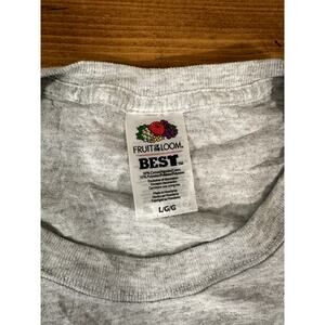This vintage Hamms Beer alcohol beverage large graphic hockey shirt is a classic fit men's t-shirt by Fruit of the Loom. The shirt features a 90s theme with a beer motif, perfect for fans of both vintage style and beer enthusiasts. The short sleeve design and gray color make it a versatile piece that could be styled in various ways for casual wear. With a size L and regular fit, this shirt is a great addition to any man's wardrobe looking to make a statement with their fashion choices.