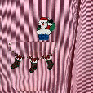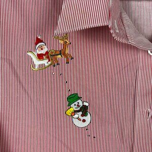 Vintage Hana Christmas-Themed Red & White Striped Womens Button-Up Shirt XL