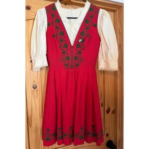 Vintage Hancke Dirndl Dress Red Size 36 US Size 4 Oktoberfest Beer Girl
