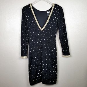 Vintage Hand Beaded Deep V Gold Black Dress 6
