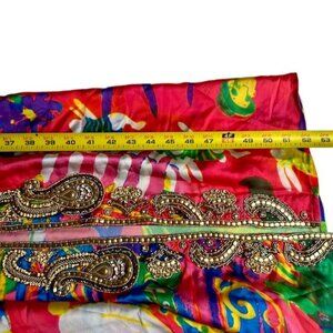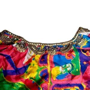 Vintage Hand Beaded Kaftan Dress With Vibrant Abstract Print 3/4 Sleeves Size M