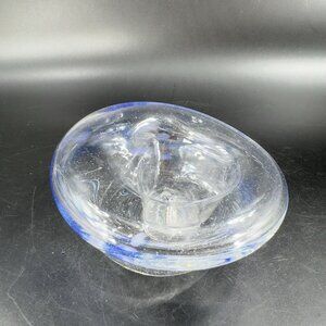 Vintage Hand Blown Art Glass Dish Bowl Clear With Blue Spots Hand Made Glass VTG