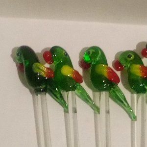 Vintage Hand Blown Art Glass Parrot Swizzle Sticks