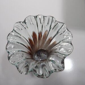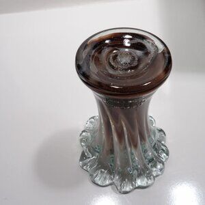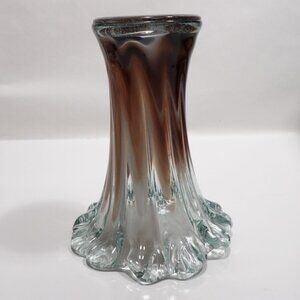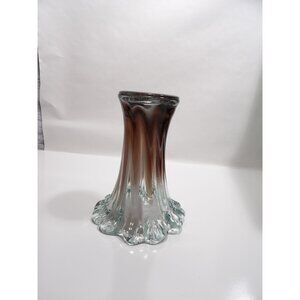 Vintage Hand Blown Art Glass Vase Purple Fused Clear Decorative Display