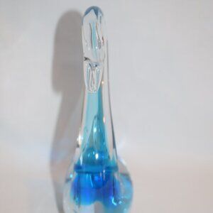 Vintage Hand Blown Blue Art Glass Swan Bird Figurine