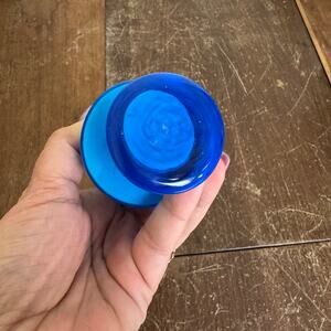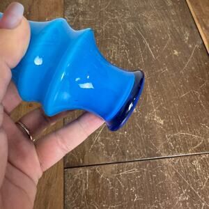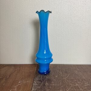 Vintage Hand Blown Blue Ruffle Top Rim 8 inch Flower Bud Vase