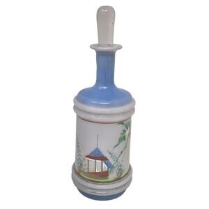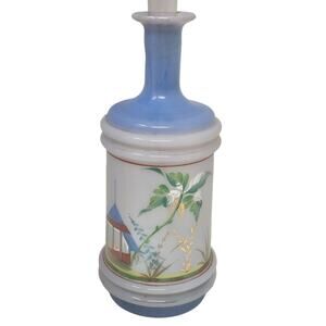 Vintage Hand Blown Bottle Hand Painted Blue & Gold Art Glass with Stopper
