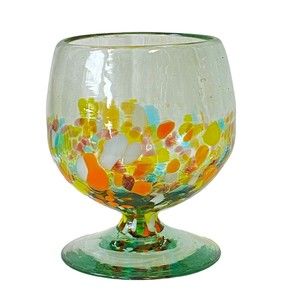 Vintage Hand Blown Confetti Art Glass Brandy Snifter Multicolored Measures approximately: 5.25" tall and 3.75" diameter. 1.3 lbs Excellent condition. No chips or cracks.