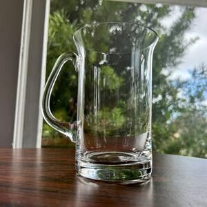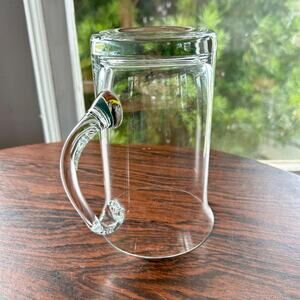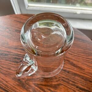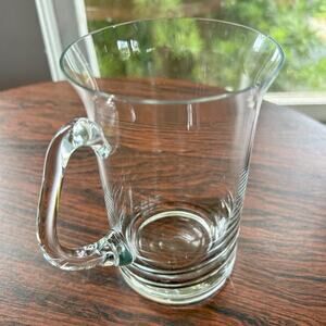 Vintage hand-blown glass beer stein in very nice condition. This clear glass mug features a classic design with a sturdy handle, offering both durability and nostalgic charm. Perfect for enjoying your favorite beverages or displaying as part of a vintage barware collection.