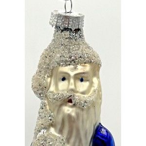 Vintage Hand Blown Glass Christmas Ornament Old World Santa Sapphire Glitter