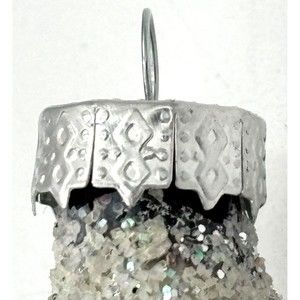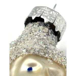 Condition: Pre-owned in repaired condition. The only repair that was made was at the top of the ornament. The original ornament cap was broken off exposing the rough and chipped edge of the top of the ornament. Please note that the ornament cap was replaced with a non-vintage silver cap, but works perfectly. This ornament was acquired in a collection of Eastern European hand blown glass ornaments. The biggest guess is that is from either Poland or the Czech Republic. I do not believe this to be a Christopher Radko because the glass doesn't feel the same as a typical Radko, but it is hand blown and very beautiful. The silvery glitter is well done and does not flake off when touching it. It is a well made piece, designer unknown. Measures about 6.5" in height. Please see all photos for condition.