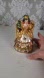 Vintage hand blown glass ornament shaped like an angel holding a small potted Christmas tree. Hand painted face. Vibrant colors and glitter accents throughout. It measures about 6" tall, 3.5" wide, and 3" in length. It is in excellent condition - no chips or cracks. See the photos for more details.