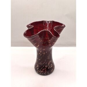 Vintage Hand Blown Glass Ruby Red and Gold Flecks Handkerchief Vase
