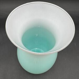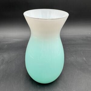 Vintage Hand Blown Glass Vase Ombre Blue Green to White 8.25" x 5"