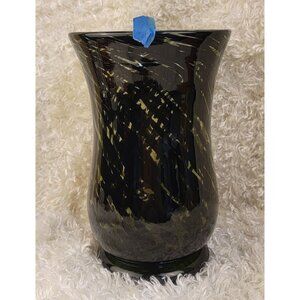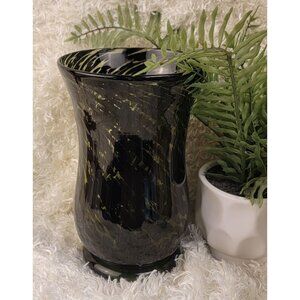Vintage Hand Blown Green and Black Swirl Vase. Featuring a mesmerizing swirl pattern in black and green, giving it an abstract and visually engaging appearance. Crafted in the mid-1900s from high-quality, hand blown glass. Approximate measurements: 9 in x 6 in x 6 in. Please see the provided photos for further details.