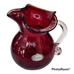 Perfect for adding timeless elegance to any space, the Vintage Hand Blown Rainbow Co Deep Red Pitcher Creamer Vase is sure to be the perfect finishing touch for your home.