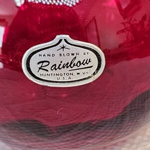 The Vintage Hand Blown Rainbow Co Deep Red Pitcher Creamer Vase from West Virginia is an exquisite piece of home decor.