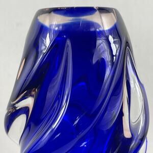 Vintage Hand Blown Studio Art Glass Twisted Vase Clear To Cobalt Blue & Rose 7”
