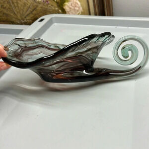 Vintage Hand Blown Swirl Art Glass Purple Hued Centerpiece Bowl Decor