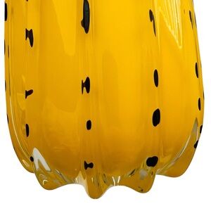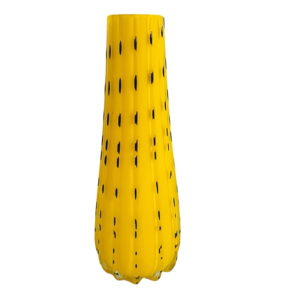 Vintage Hand Blown Yellow Black Art Glass Vase