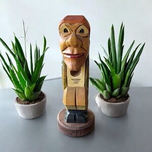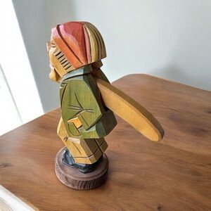 Carved with intricate detail, this vintage reproduction Black Forest piece captures the essence of traditional craftsmanship. The natural wood finish adds warmth and character, making it a charming addition to any home decor. Whether displayed on a mantel or used as a centerpiece, its timeless appeal is sure to draw admiration. This pre-owned item carries a touch of history, adding to its unique charm.
