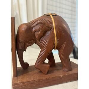 Add a touch of bohemian charm to your bookshelf with these vintage wooden bookends featuring a hand-carved elephant design. Measuring 6.5 inches in height and 8 inches in length, this small bookends are perfect for supporting your favorite reads. The brown color and wood grain pattern give them a unique and authentic feel, while the intricate carvings of the elephant add a touch of elegance.