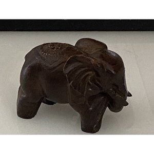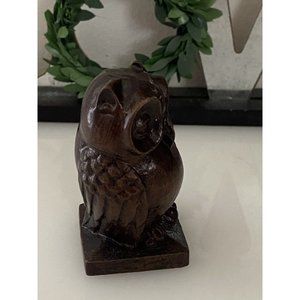 Vintage Hand Carved Dark Brown Solid Wood Elephant, Owl and Pig Figurine Set of 3. Beautiful hand carved solid dark wood. Many Details. Elephant has symbol carvings on back. Measurements in Pictures. Cute Set of Vintage Hand Carved animals for your collection!!! Condition is excellent!