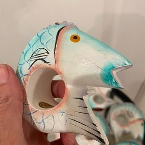 These wooden fish napkin rings are pre-owned, Vintage. Excellent condition. No flaws.