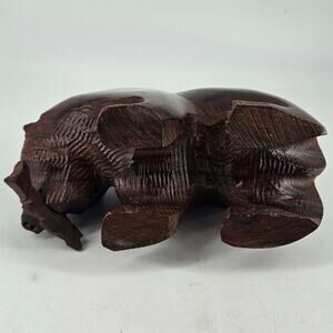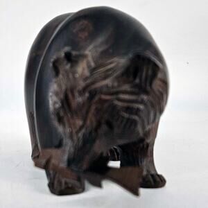 Vintage Hand Carved Ironwood Grizzly Bear with fish figurine . Measures about 3.5" T, 5.5" X 2.5. In great vintage condition